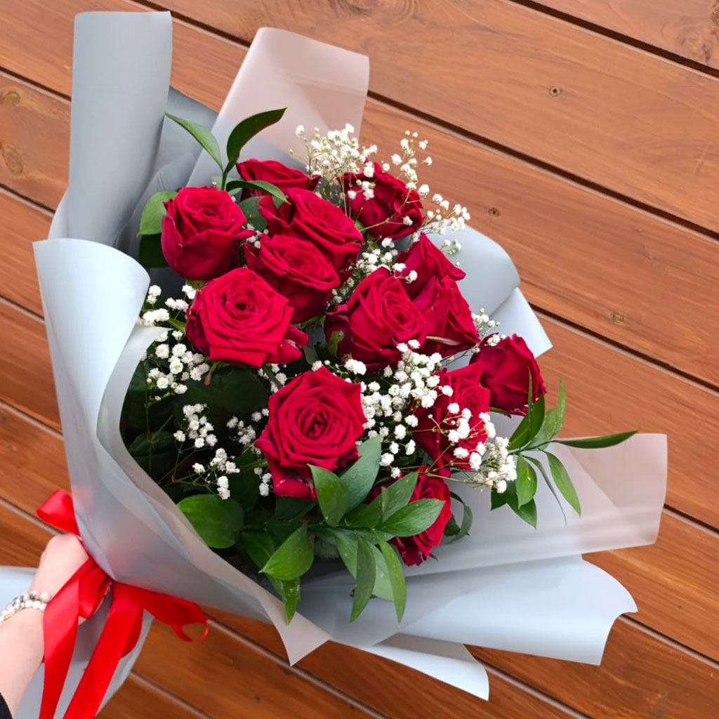 На фото представлен возможный вариант сборки. Мы соберем букет максимально похожий с использованием сезонных цветов и сохранением стиля композиции. Букет получится уникальным и неповторимым, как и его получатель.
