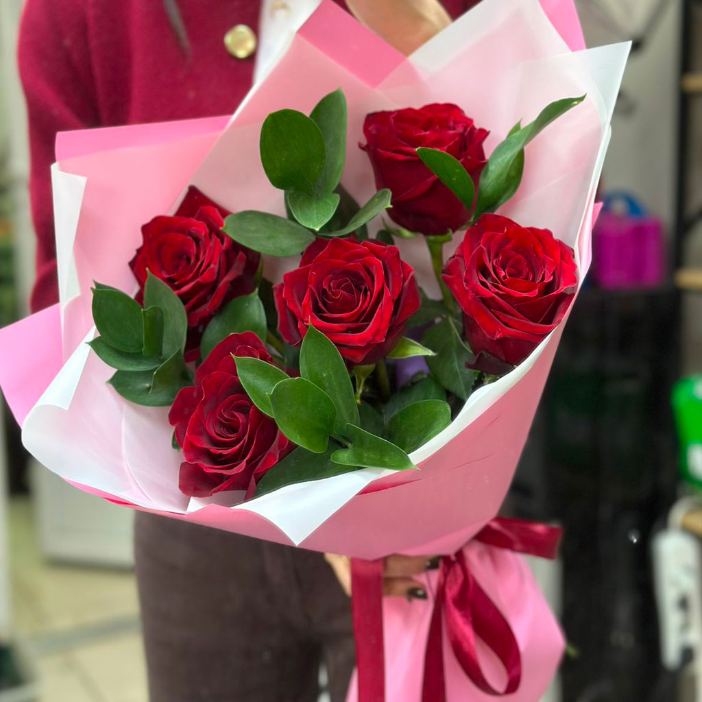 На фото представлен возможный вариант сборки. Мы соберем букет максимально похожий с использованием сезонных цветов и сохранением стиля композиции. Букет получится уникальным и неповторимым, как и его получатель.